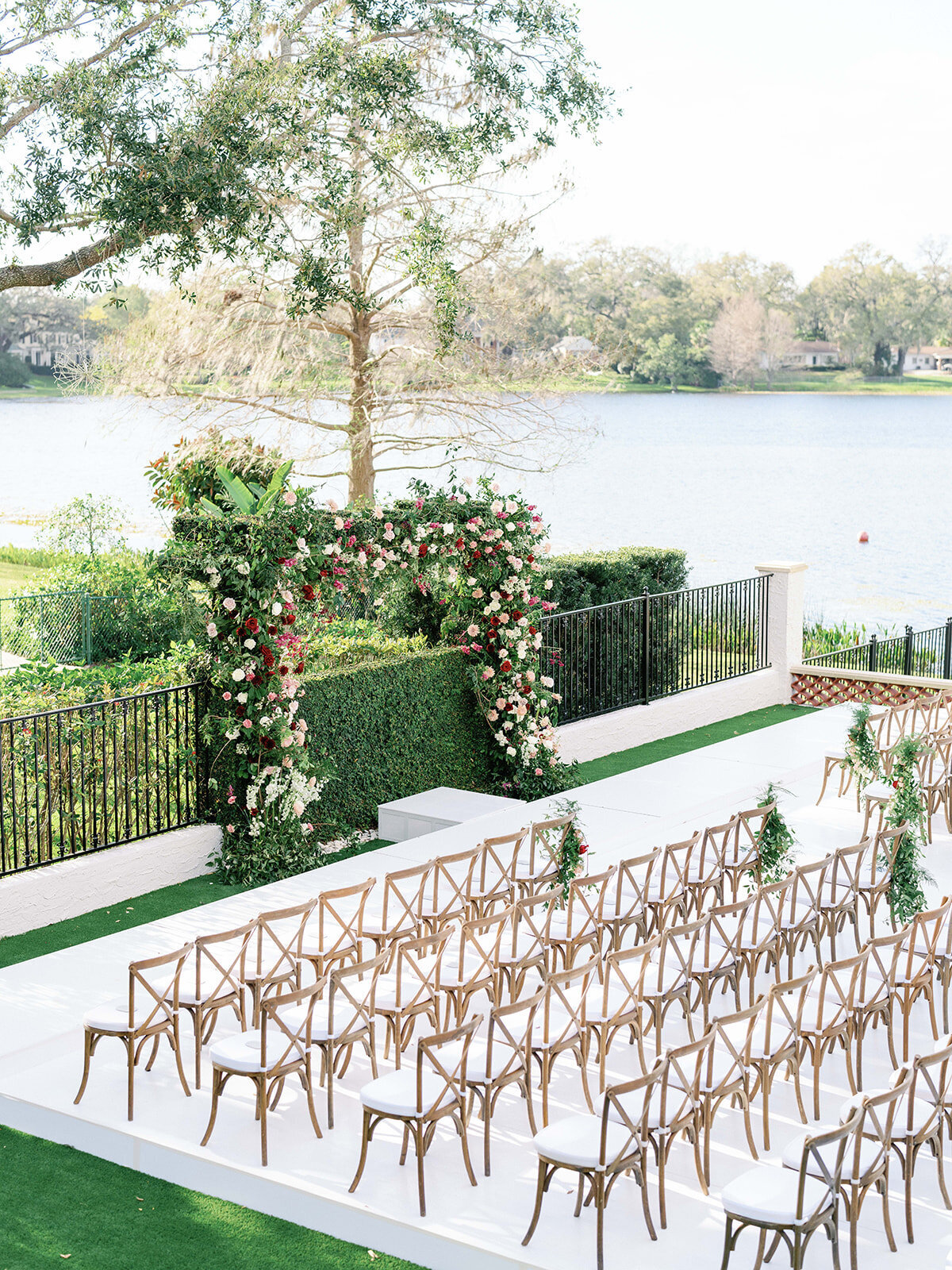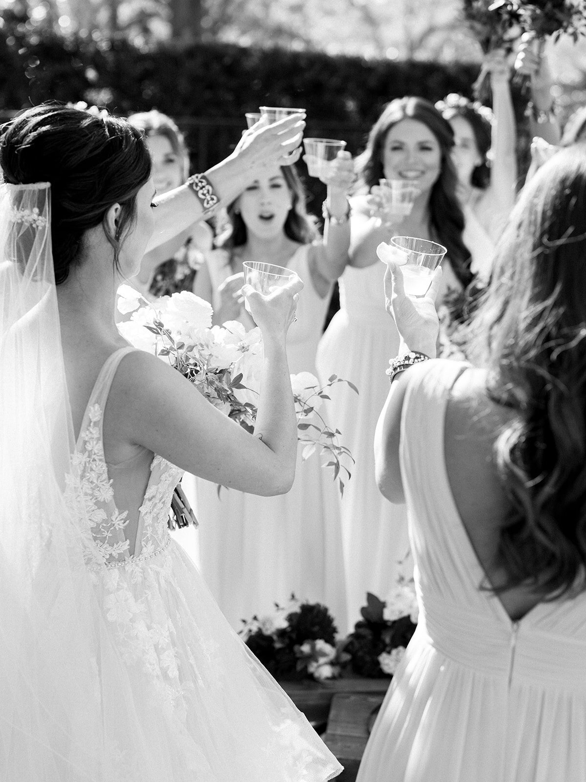 As a surprise for the Groom, we completely transformed a simple bridge room into a Whiskey Lounge, complete with leather furniture, moss-covered bar, whiskey dispensers, and spandex chandeliers with the couple’s monogram. The Seating Chart wow-ed guests as they entered the reception. Each individual floral arrangement had a custom wood tag engraved with the guest's name and included their table number. It was an incredible display and guests could take home the arrangement at the end of the night.